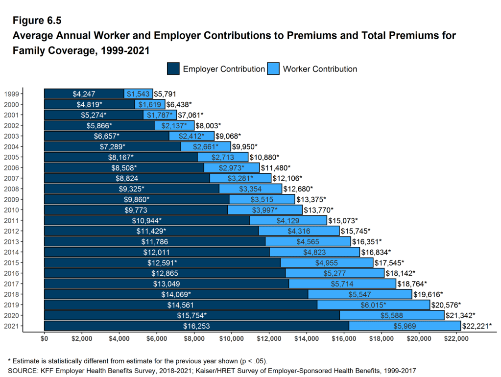 Health insurance typically accounts for one of the largest P&L expenses for an employer outside of payroll. Typically there is a cost share for this expense (the insurance premium) between the employees and the employer. Benchmark data from the Kaiser Family Foundation (KFF) stated that in 2020 the average employer share of this expense fell between 60-70%, leaving the employees with ~30%-40% of the premium responsibility deducted out of their payroll. 2021 KFF findings here: https://www.kff.org/health-costs/. Companies could argue that they are essentially compensating their employees by covering a larger percentage of their healthcare premium on top of what they pay them through payroll.